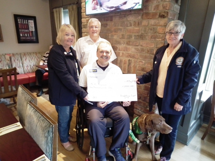 Captain Ken Hargreaves (Invictus Games Archer) receives a cheque from AFSG Officers.