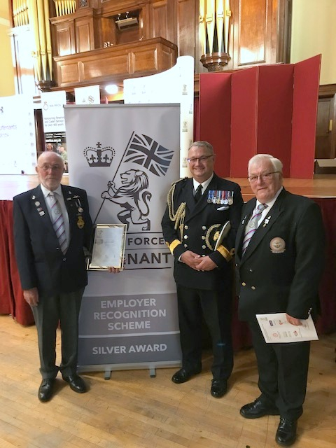 At the recent Lord Lieutenants Award evening held at Lancaster Town Hall 13th July, attended by Peter Clegg and Mike Sutcliff of the Armed Forces Support Group (AFSG) this is an annual event where the Local Cadets, reserve armed Forces personal, are recognized for usually going the extra mile, and now includes local businesses who are signing up too and getting Bronze or silver awards for their efforts in supporting the Armed Forces Covenant. The AFSG team were supporting Northern Estates Services  Ltd  from Barrowford, who were receiving a Silver award, AFSG team were there supporting them and Peter Clegg was to receieve an award on their behalf.