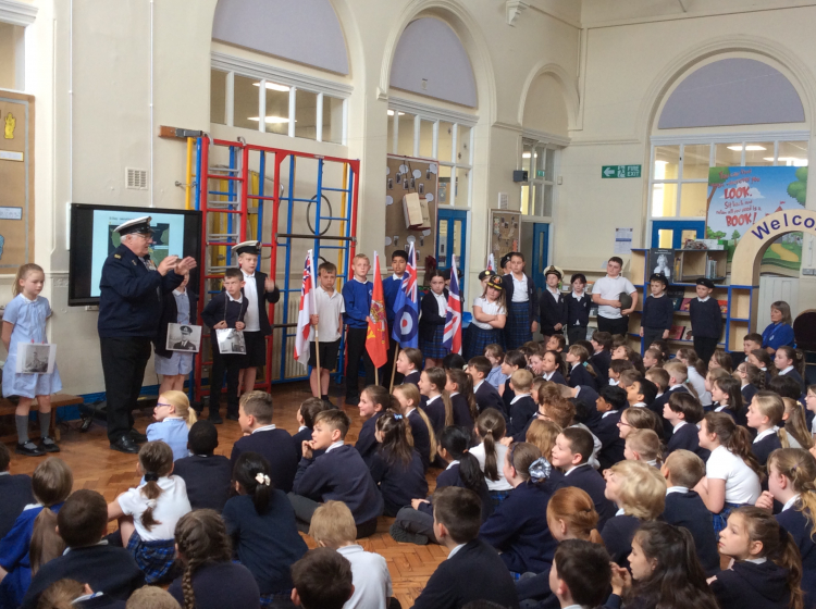 Chairman of AFSG Mike Sutcliff and Ex Army Staff Sergeant  Dave Jones put on a Power Point display with a difference, we had the children play the major characters, and had around 20 of then dressed up in part uniforms, and all the Flags of the UK were used, and together we went through the planning and launching of D-Day. its been noted that with the younger end meaning 30 and less there is sadly a great lack of knowledge of this huge part of our history, but not at Park Juniors, we were supported by Teacher Dean Farry, and all with the kind permission of the head teacher Sarah Midgley.